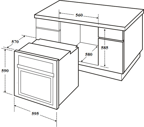 • Kích thước khoét tủ: (SâuxRỗngxCao) 580x560x585mm