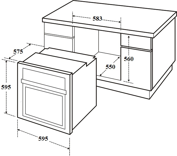 • Kích thước âm tủ: 560x583x550mm (CaoxNgangXSâu)