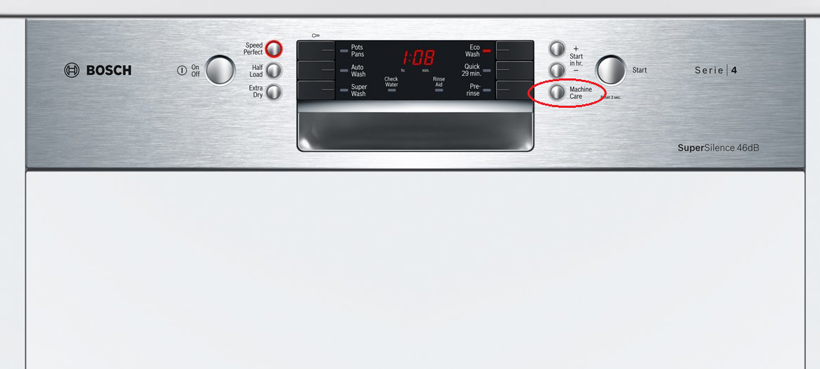 Chất tẩy rửa của Máy rửa chén độc lập Bosch - SMS68II07E không có Phốt phát và các chương trình ngắn ở nhiệt độ thấp, gây ra việc tích tụ chất béo và đóng cặn Canxi làm giảm đáng kể hiệu quả rửa. Điều này dễ dàng loại bỏ bằng cách sử dụng chương trình MachineCare để làm sạch khoang rửa của máy. Chỉ cần cho chất tẩy rửa và 1 vài giọt dấm vào máy và khởi động chương trình mà không có bát đĩa xếp bên trong. Đèn báo chương trình nhấp nháy để cảnh báo cho việc vệ sinh tiếp theo.