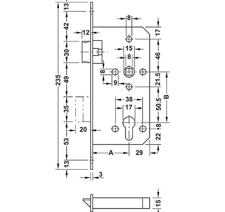 | Khoảng cách từ tâm lỗ trục tay nắm đến tâm lỗ ruột khoá: 72 mm |