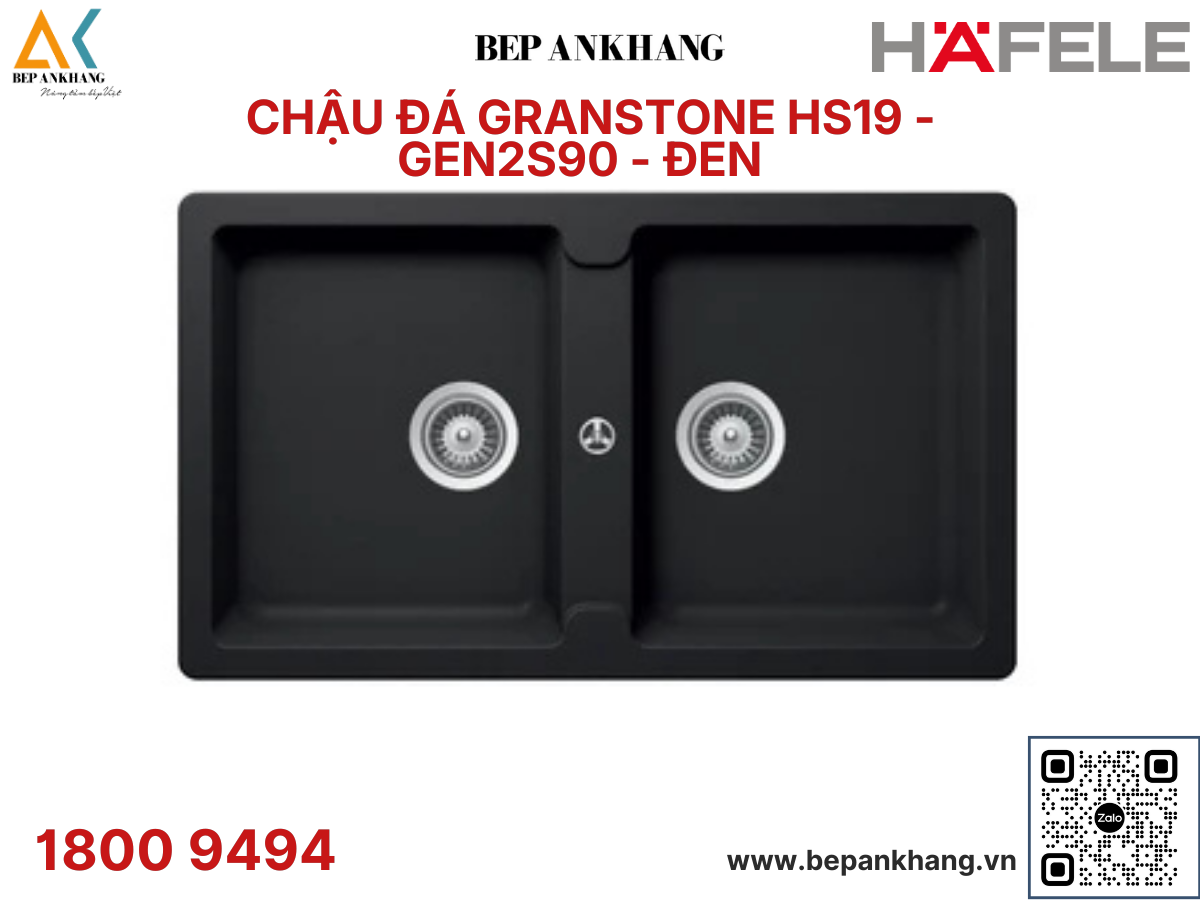 + Chậu đá Hafele HS22-GEN2S90 577.25.310 làm bằng đá nhân tạo Granstone® với 80% thạch anh