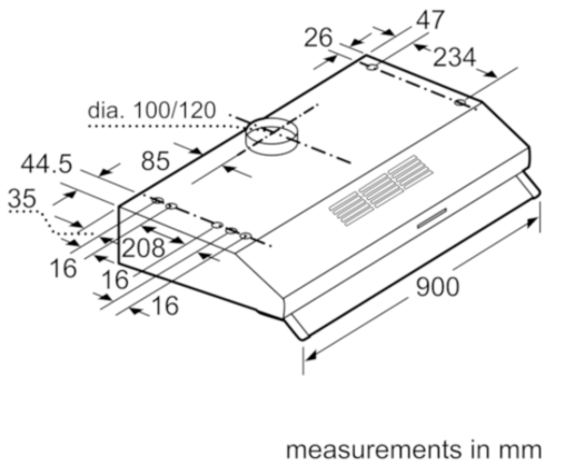 Công suất hút tối đa theo tiêu chuẩn châu Âu DIN/EN 61591: 210 m³/h
