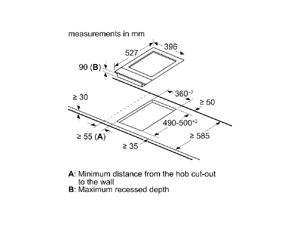 •  Kích thước hộc bếp: 360R x 490-500S x 90C mm