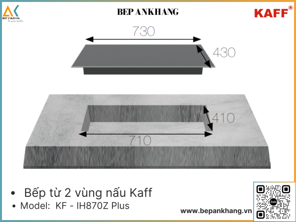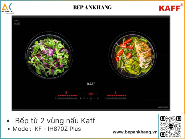 Bếp từ đôi cảm ứng KAFF KF-IH870Z Plus có Mặt kính Shott Ceran (Đức) thuộc dòng bếp từ cao cấp của thương hiệu thiết bị nhà bếp nổi tiếng tại Đức KAFF, là sự kết hợp hoàn hảo giữa 2 bên bếp đều từ sử dụng các bộ nồi chảo inox từ, tiết kiệm điện và đun nấu nhanh hơn, Bếp có thiết kế 2 lò nấu độc lập, kích thước mặt kính 730x430mm, kích thước mặt khoét đá 680x380mm phù hợp với không gian phòng bếp của người châu Á. Bếp có công suất 2 lò như nhau (2300W-2300W) tăng hiệu suất nấu nướng cao, giúp bà nội trợ rảnh rang hơn.