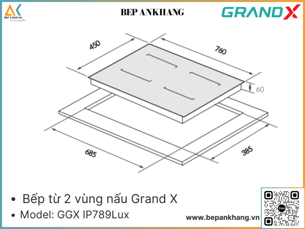 Bếp từ 2 vùng nấu Grand X GX IP789Lux - Made In Malaysia