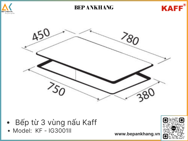 Bếp từ 3 vùng nấu KAFF KF - IG3001II - Made in Malaysia