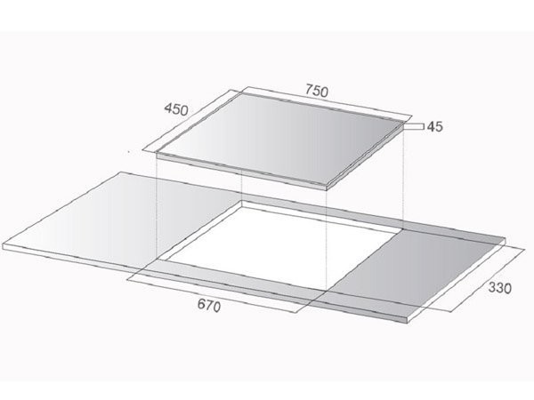 + Mặt kính nguyên khối màu đen, vát cạnh Eurokera chính hãng