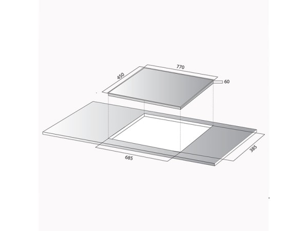 - Kích thước khoét lỗ: 685x385mm