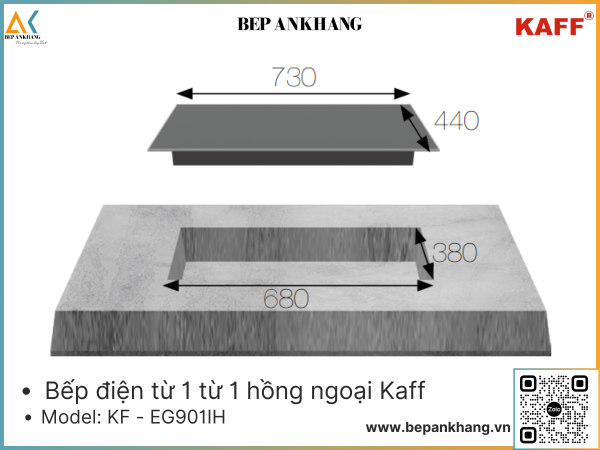 Kích thước khoét đá: 680x380 mm