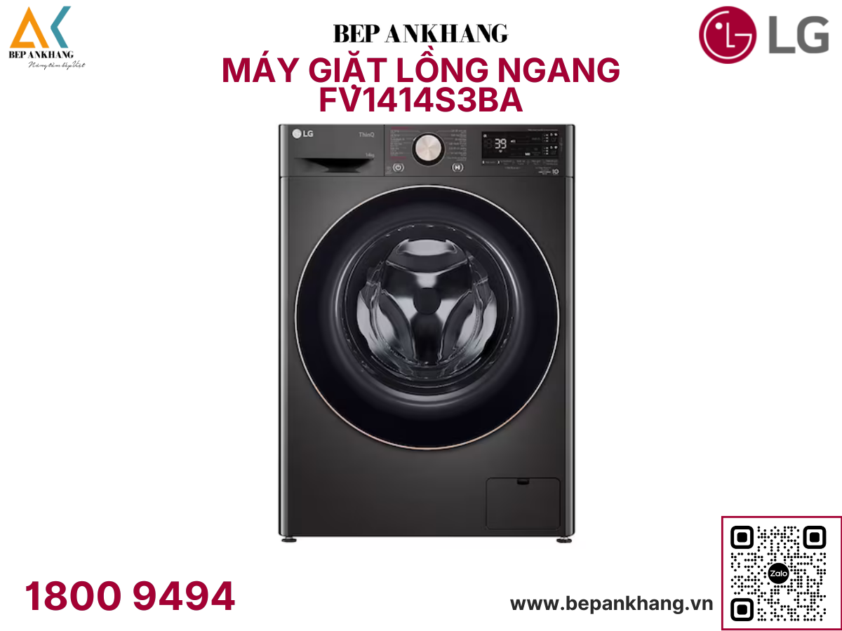 Máy giặt lồng ngang LG AI DD™ Inverter 14kg màu đen FV1414S3BA