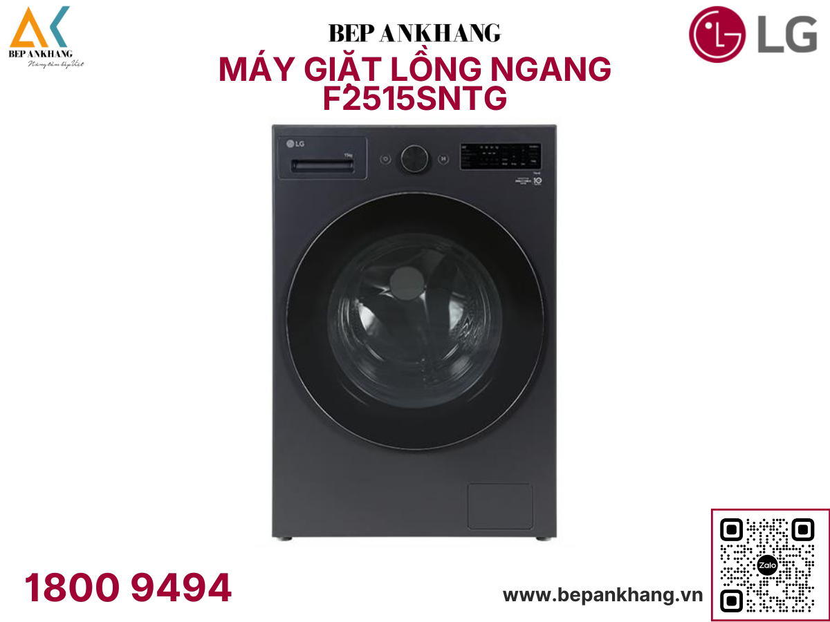 Máy giặt lồng ngang LG AI Inverter 15kg màu đen F2515SNTG - 2025