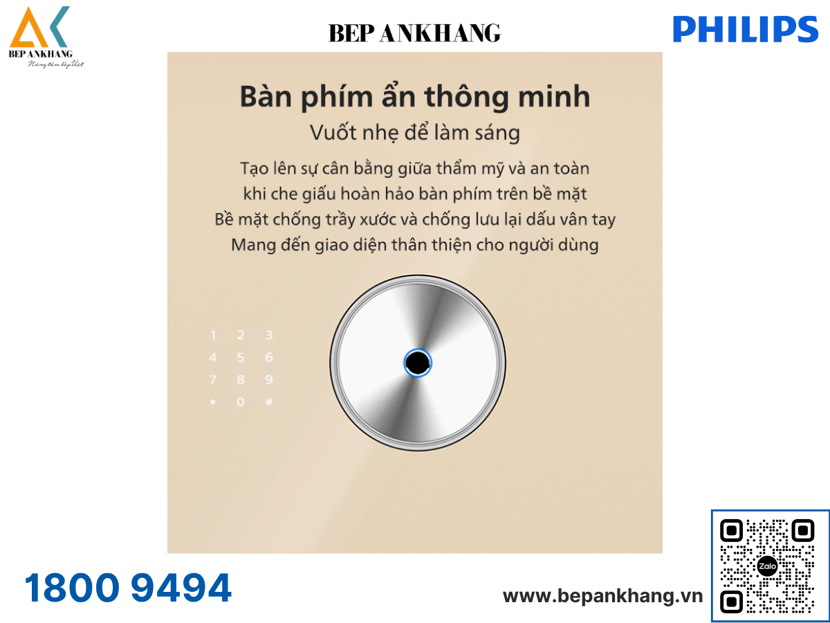Ở phần ổ pin trên cửa của két được hãng Philips thay thế với ổ pin và nắp pin hoàn toàn mới, được thiết kế sáng bóng và in logo của hãng thay vì các chất liệu nhựa đơn thuần như những mẫu thiết kế trước đó.