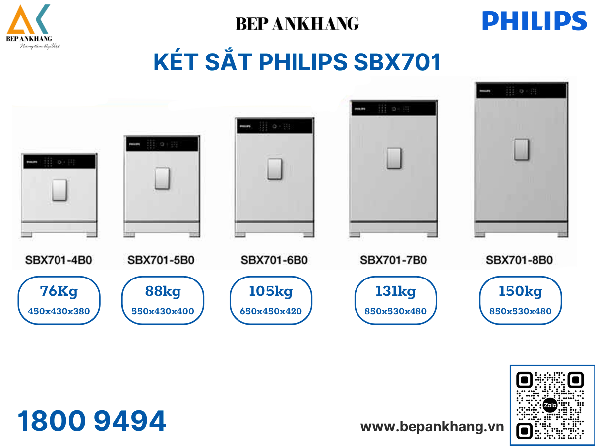 Hiện tại, két sắt thông minh SBX701 đang có 5 hạng cân tùy chọn:76kg, 88kg, 105kg, 131kg, 150kg. Chúng phù hợp với đa dạng mục đích sử dụng. Đặc biệt, với mẫu két cân nặng từ 88kg trở lên, người dùng còn được trang bị thêm ngăn kéo để cất giữ đồ trang sức quý giá vô cùng tiện lợi.