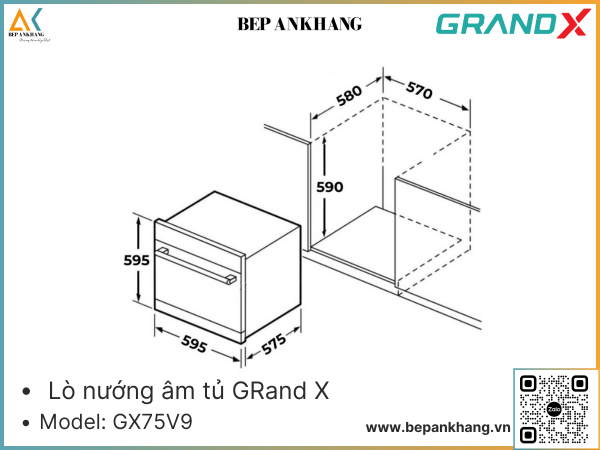 Kích thước lắp đặt : 570R x 580S x 590C mm