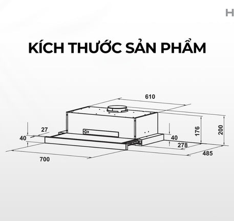 – Thiết kế dạng âm tủ kéo rút 700mm