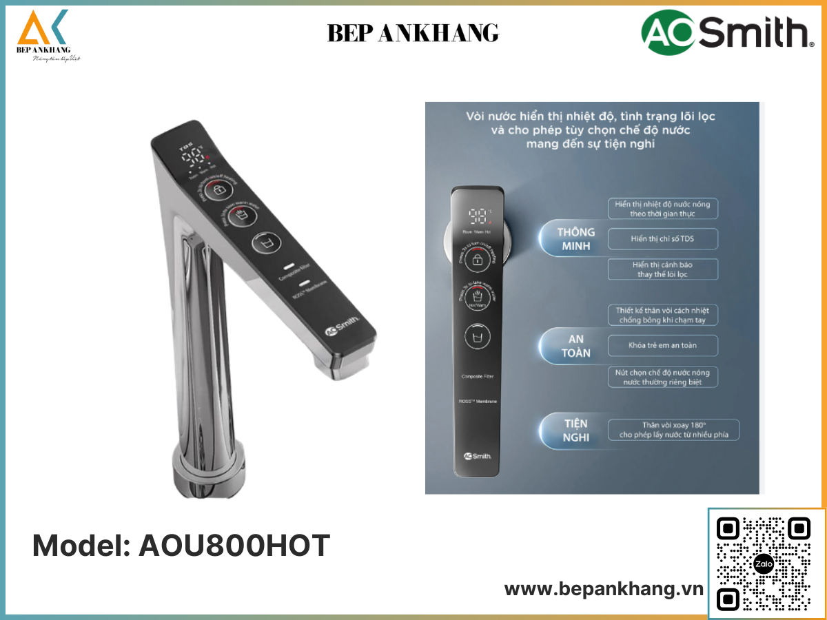 Để giúp người dùng kiểm tra được tình trạng lõi lọc hiện tại nhằm đảm bảo chất lượng nguồn nước luôn sạch khuẩn, trên vòi nước của Aosmith LUX-AOU800HOT còn được trang bị 2 đèn báo hiệu – Đèn báo tuổi thọ lõi Composite & Đèn báo tuổi thọ lõi RO: