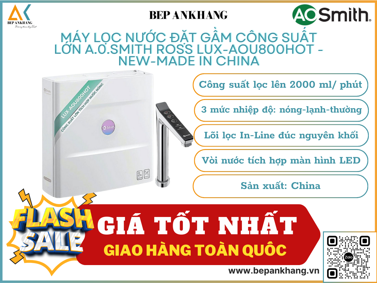 Chứng nhận NSF/ANSI: Máy lọc nước AOSmith LUX-AOU800HOT được chứng nhận bởi NSF - Hiệp hội an toàn thực phẩm và nước uống quốc tế của Mỹ, đảm bảo nước sau lọc an toàn tuyệt đối cho sức khỏe.