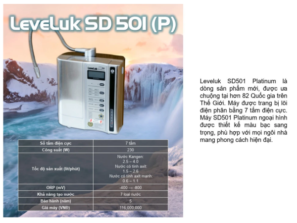 Kangen SD501 Platinum hoàn toàn mới có thiết kế hiện đại đã được tinh chỉnh lại, là sản phẩm hoàn hảo để phối hợp đẹp mắt với những căn bếp đầy phong cách ngày nay. Máy có hiệu suất mạnh mẽ tích hợp đầy đủ trong một sản phẩm. Thiết kế hiện đại với giao diện mới thông minh, cùng độ tin cậy cao. Kangen SD501 Platinum có thể tạo ra nhiều loại nước như: Nước Kangen mạnh, Nước Kangen®, Nước trung tính, Nước làm đẹp và Nước có tính axit mạnh.
