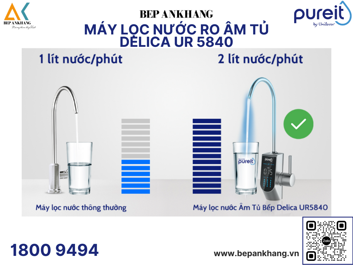 Tốc độ lọc 2l/phút nhanh nhất thị trường dòng âm tủ bếp