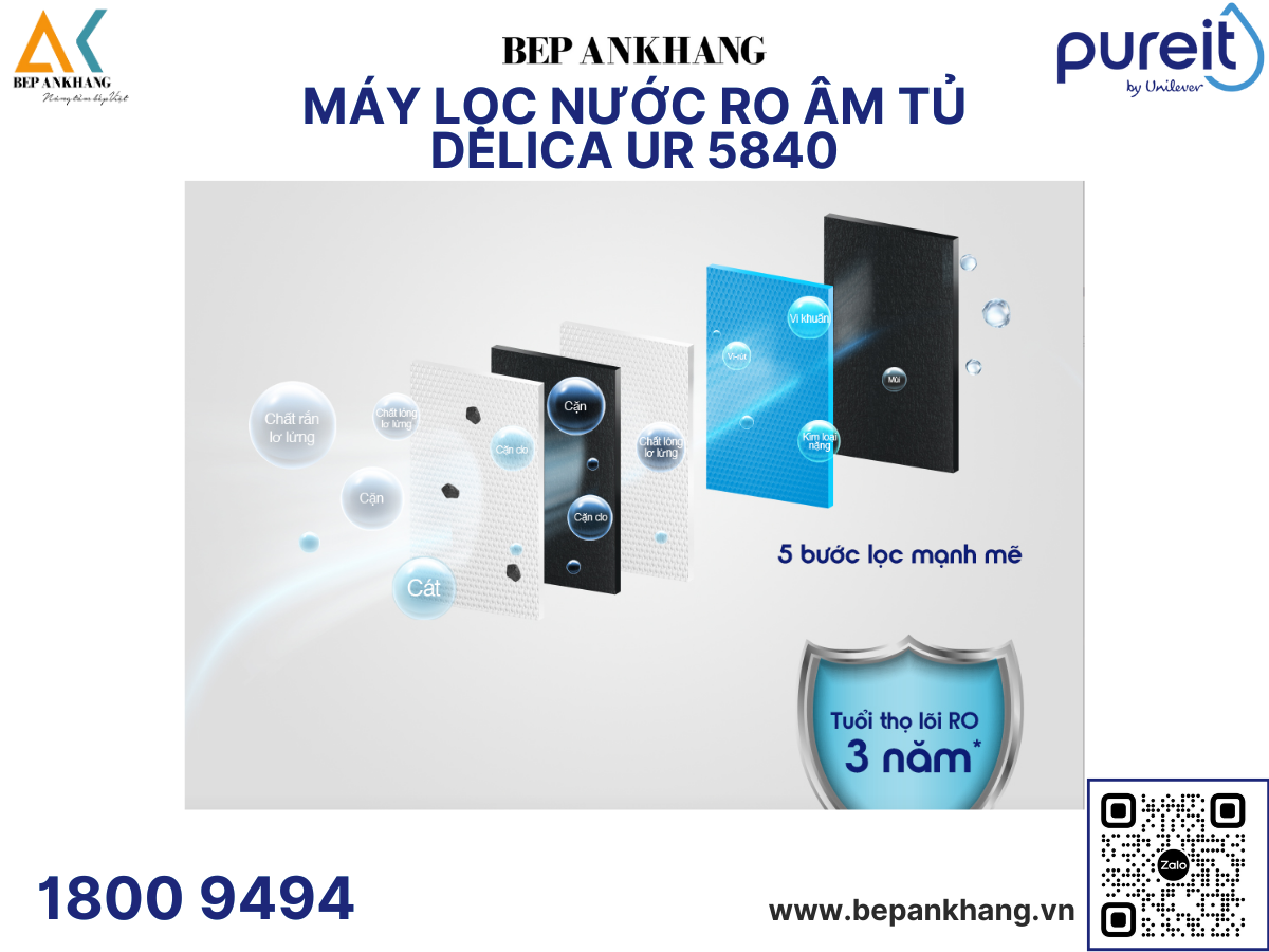 Máy lọc nước Unilever Pureit Delica UR5840 có hệ thống 3 lõi lọc mạnh mẽ