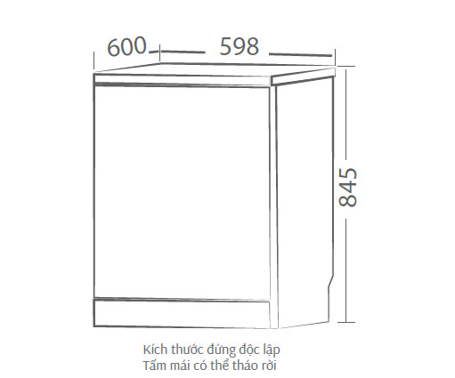 • Kích thước sản phẩm đứng độc lập ( CaoxSâuxRộng): 845x600x598mm