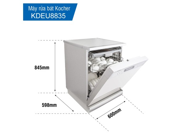 Máy rửa bát Kocher KDEU-8818 cho phép người dùng có thể rửa được một lượng bát đĩa lớn trong một chu trình rửa, thích hợp cho các gia đình đông thành viên, nhiều bát đĩa và vật dụng.