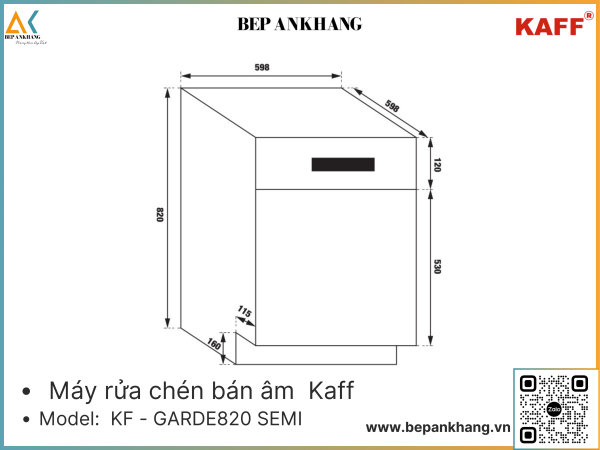 Máy rửa chén âm bán phần KAFF KF - GARDE820 SEMI - Made in Turkey