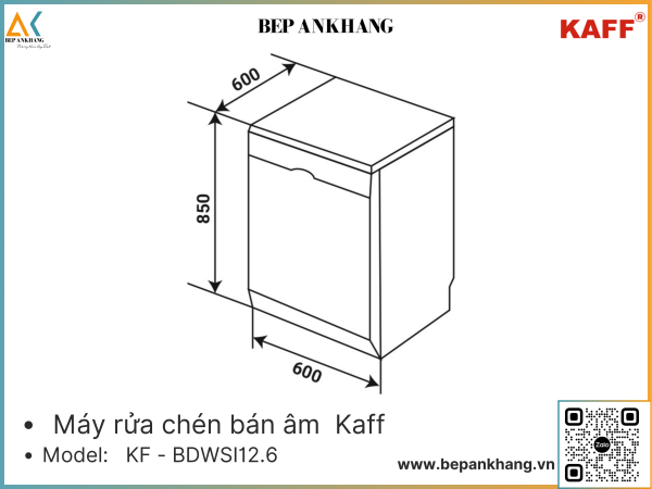 Máy rửa chén bán âm độc lập KAFF KF - BDWSI12.6 - Made in Turkey