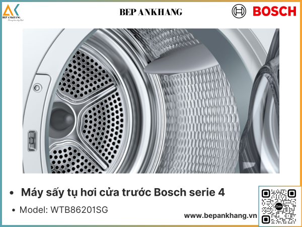 Máy sấy tụ hơi 8KG Bosch WTB86201SG - serie 4