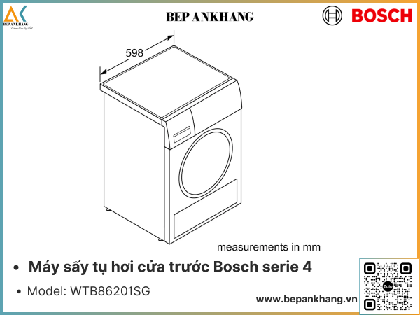 + Dung lượng của Bosch WTB86201SG: 8 kgs