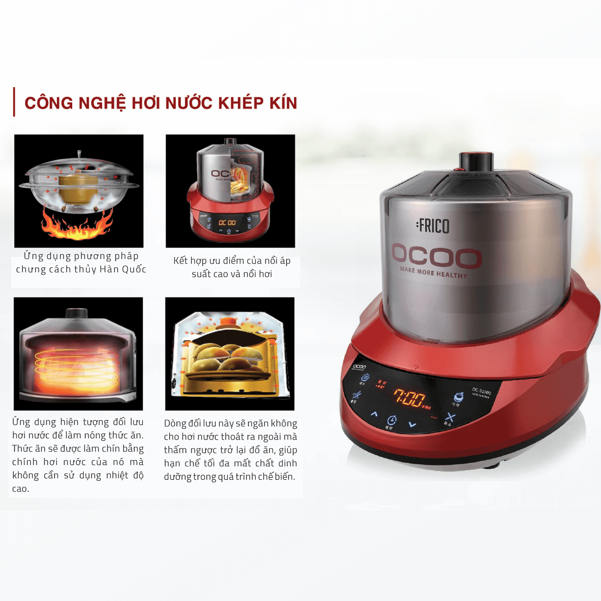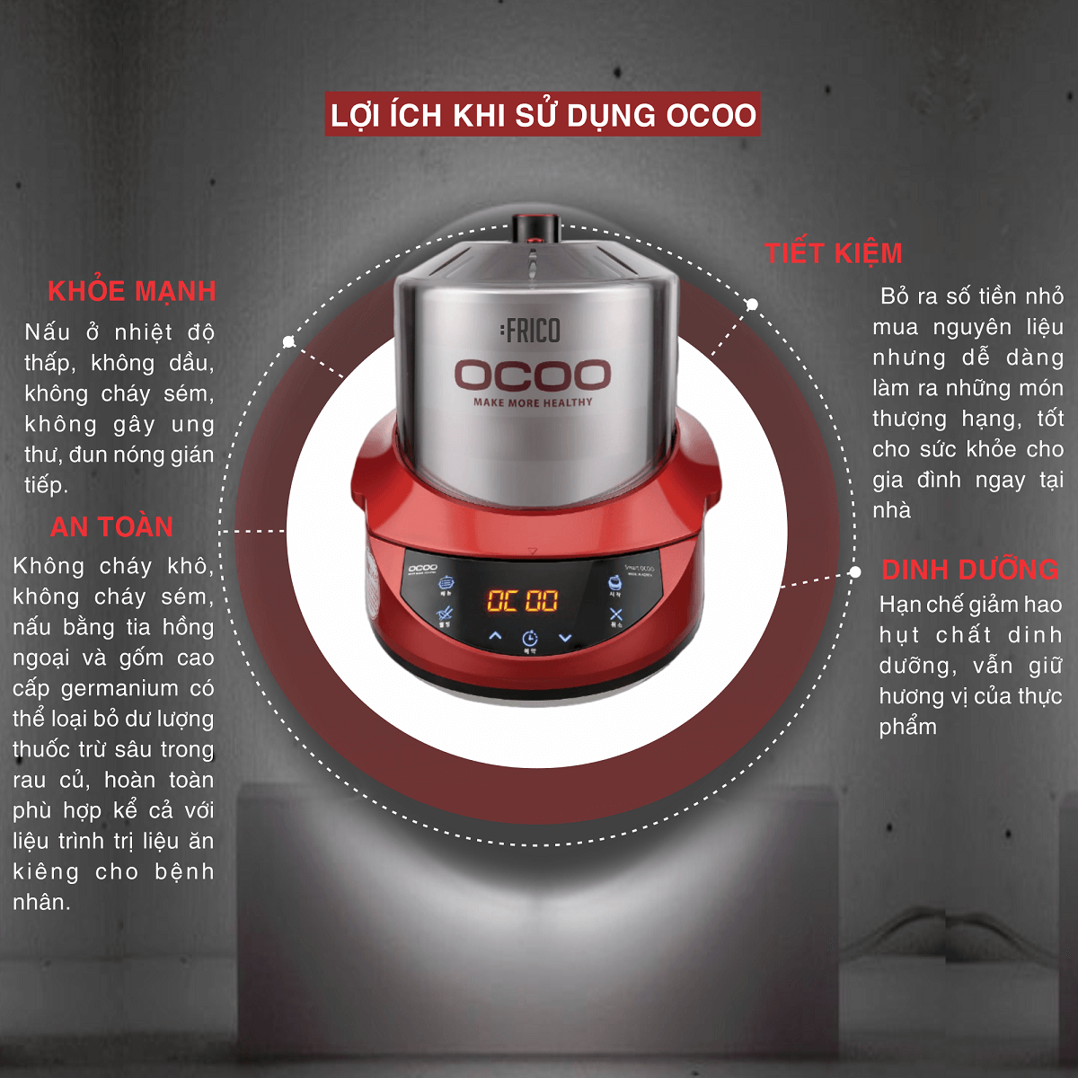 OCOO là nồi dưỡng sinh nổi tiếng đến từ Hàn Quốc với công nghệ thông minh giúp chúng ta có thể dễ dàng nấu các món ăn bổ dưỡng, tốt cho sức khỏe với chất lượng nhà hàng ngay tại căn bếp của mình.