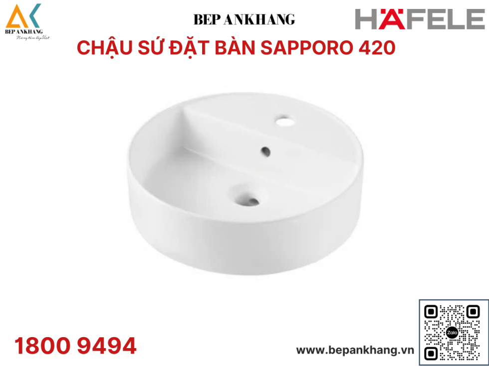 Chậu sứ đặt bàn Hafele - Sapporo 420 - 588.79.031
