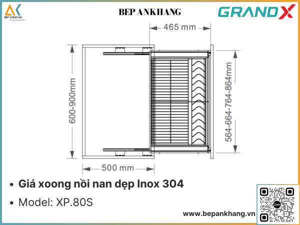 Giá xoong nồi nan dẹt GRANDX XP.80S - 800mm