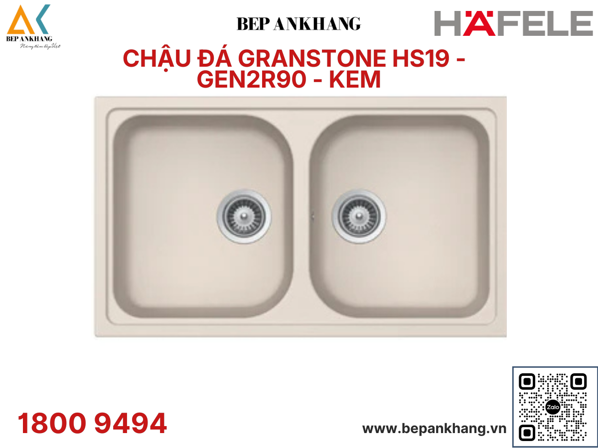 + Chậu đá Hafele HS19-GEN2R90 570.35.480 làm bằng đá nhân tạo Granstone® với 80% thạch anh