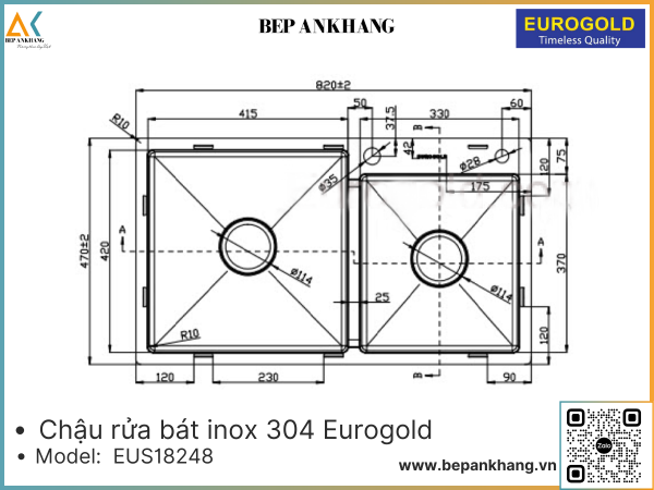 • Kích thước hố (mm): R420 x S415 & R370 x S330