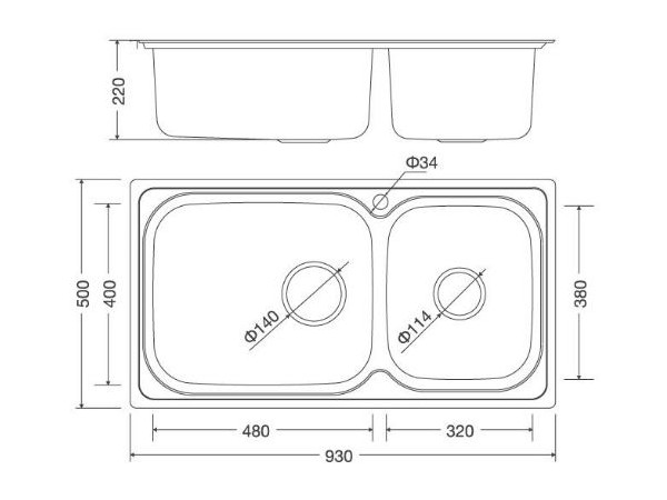- Kích thước: W930 x D500 x H220mm
