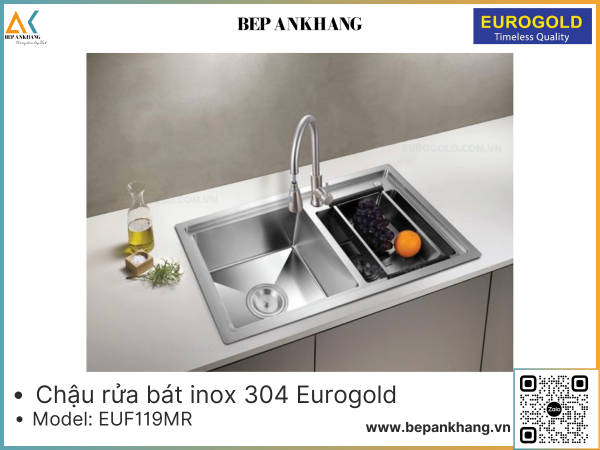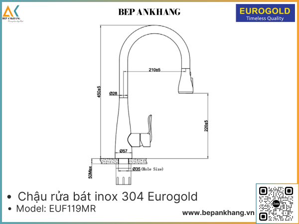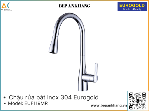 Vòi rửa bát rút dây Eurogold EUF119MR với 2 đường nóng lạnh